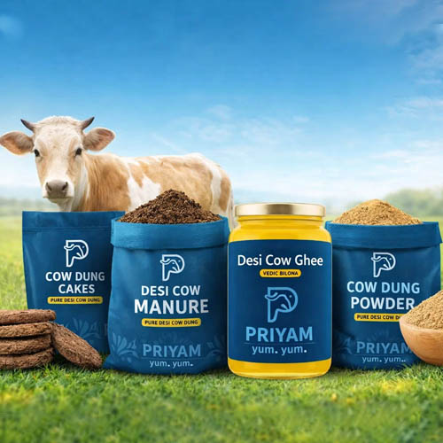 Priyam A2 Milk specializes in a range of cow-based products, including A2 ghee, cow dung cakes, cow dung manure, and cow dung powder. The A2 ghee is prepared using traditional methods from pure A2 cow milk, ensuring rich aroma, natural taste, and high nutritional value. It is widely used for cooking, religious rituals, and wellness purposes. The cow dung cakes and cow dung powder are processed hygienically and are commonly used for agricultural applications, organic farming, havan and puja rituals, and eco-friendly fuel purposes. Cow dung manure offered by the company supports soil fertility, improves crop yield, and promotes sustainable and organic agriculture.
